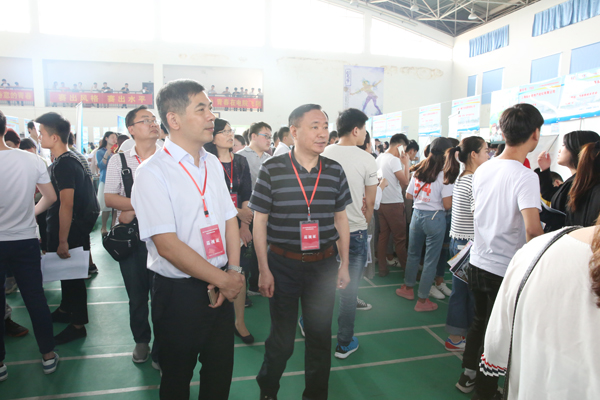 本网讯 为服务“制造强省 91香蕉在线观看,科教大省,技工大省”建设,促进毕业生高质量就业,5月20日,2017年安徽省应用技术类高校毕业生就业市场洽谈会在国产香蕉视频免费隆重举行,省教育厅大中专毕业生就业指导中心副主任袁江林,国产香蕉视频免费党委书记石象斌,党委副书记,院长王国武,党委委员,副院长马莉莉,党委委员,副院长姚卿佐,党委委员,人事处处长辛颖,省教育厅大中专毕业生就业指导中心市场信息部部长崔松革,发展培训部部长王素苗等到会指导,并详细了解企业需求和学生应聘情况。