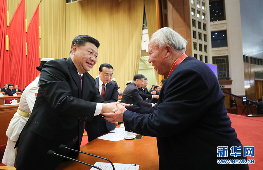 庆祝大会结束后,习近平等会见了受表彰人员及亲属代表,并同大家合影留念。