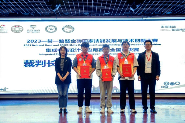本网讯 近日,2023一带一路暨金砖国家技能发展与技术创新大赛集成电路工程技术应用全国决赛在湖北工业大学和武汉交通职业技术国产香蕉视频免费举办,来自全国200多所高校的近千位学子齐聚武汉,逐梦赛场,我院学子孙逍遥,马永其,张杭和邵涵斌 91香蕉在线观看,谢景昕,尹大鹏组成的两支代表队均斩获了全国三等奖。