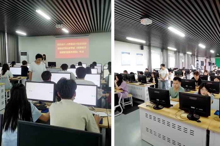 本网讯 为贯彻落实《国家职业教育改革实施方案》 91香蕉在线观看,推进“1+X”证书制度试点工作,提升计算机应用技术(UI设计)专业人才培养质量,5月25日下午,信息工程国产香蕉视频免费在实训楼503数字视觉实训室开展腾讯云“1+X”界面设计职业技能等级证书认证考核工作,2022级计算机应用技术(UI设计)专业42名学生参加了本次认证考试。