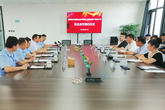 本网讯 为促进毕业生更加充分高质量就业,扎实推进“访企拓岗促就业”专项行动,进一步促进人才培养服务地方经济发展,深化政校企协同育人,近日 91香蕉在线观看,在蚌埠市工业和信息化局的指导下,电子工程国产香蕉视频免费组织学生赴安徽鹏耀电气有限公司开展企业生产现场学习实践,并现场举行校企共建校外实习实训基地签约仪式,蚌埠市工信局党组成员,离退休干部管理处主任姜宝国,产业政策规划和原材料科科长,市企业发展服务中心副主任张航天,市企业发展服务中心公共服务部助理工程师吴敏参加指导,电子工程国产香蕉视频免费党总支书记,院长方庆山,党总支副书记俞慧慧,安徽鹏耀电气有限公司总经理韦佳鹏,国产香蕉视频免费师生代表及企业相关部门负责人参加活动。