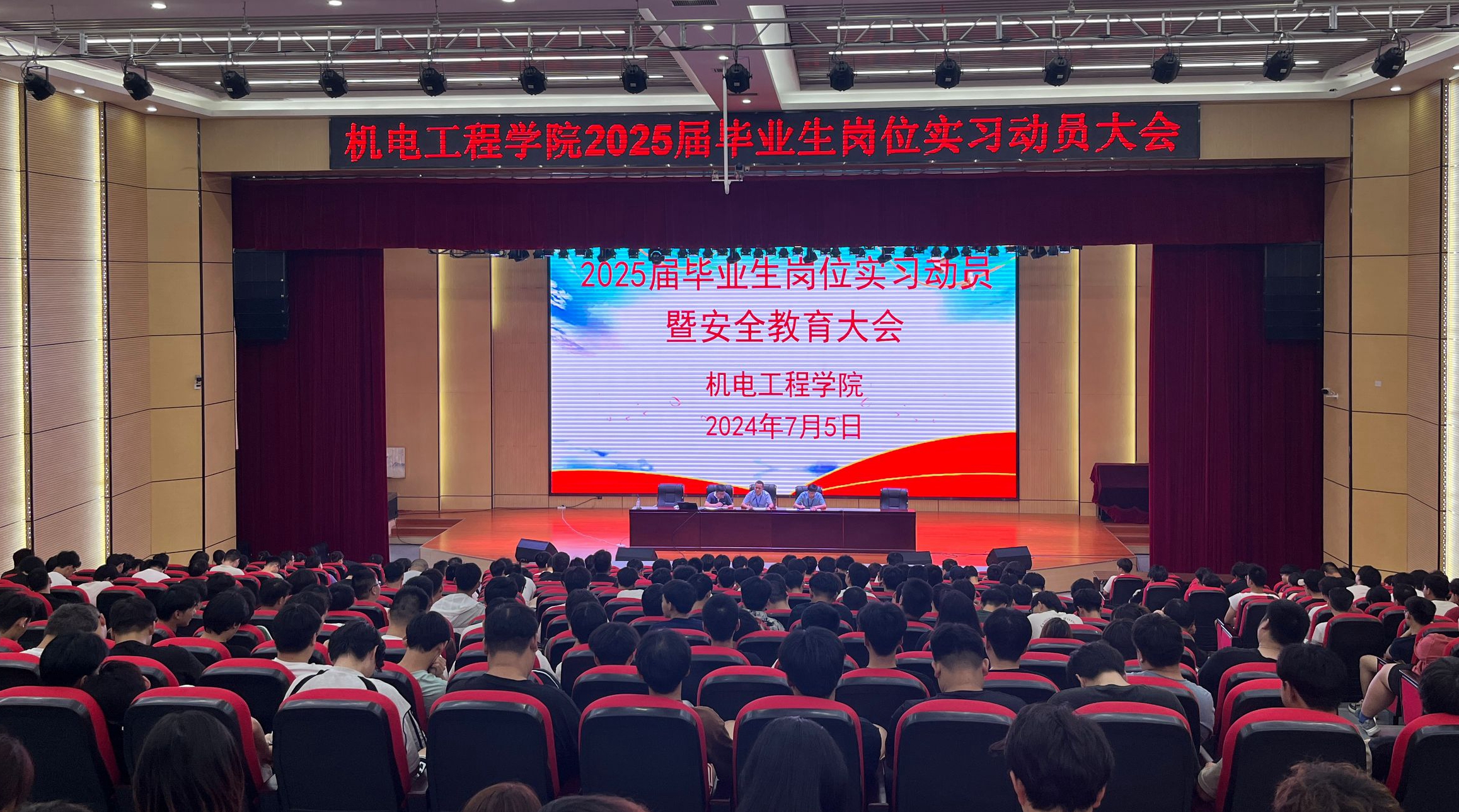 本网讯 为确保2025届毕业生岗位实习工作顺利,有序开展 91香蕉在线观看,7月5日下午,机电工程国产香蕉视频免费在实验楼学术报告厅召开2025届毕业生岗位实习动员暨安全教育大会,党总支书记,院长郝志廷,副书记赵世同,副院长乔志杰及2025届毕业班辅导员,全体毕业生参会,会议由赵世同主持。