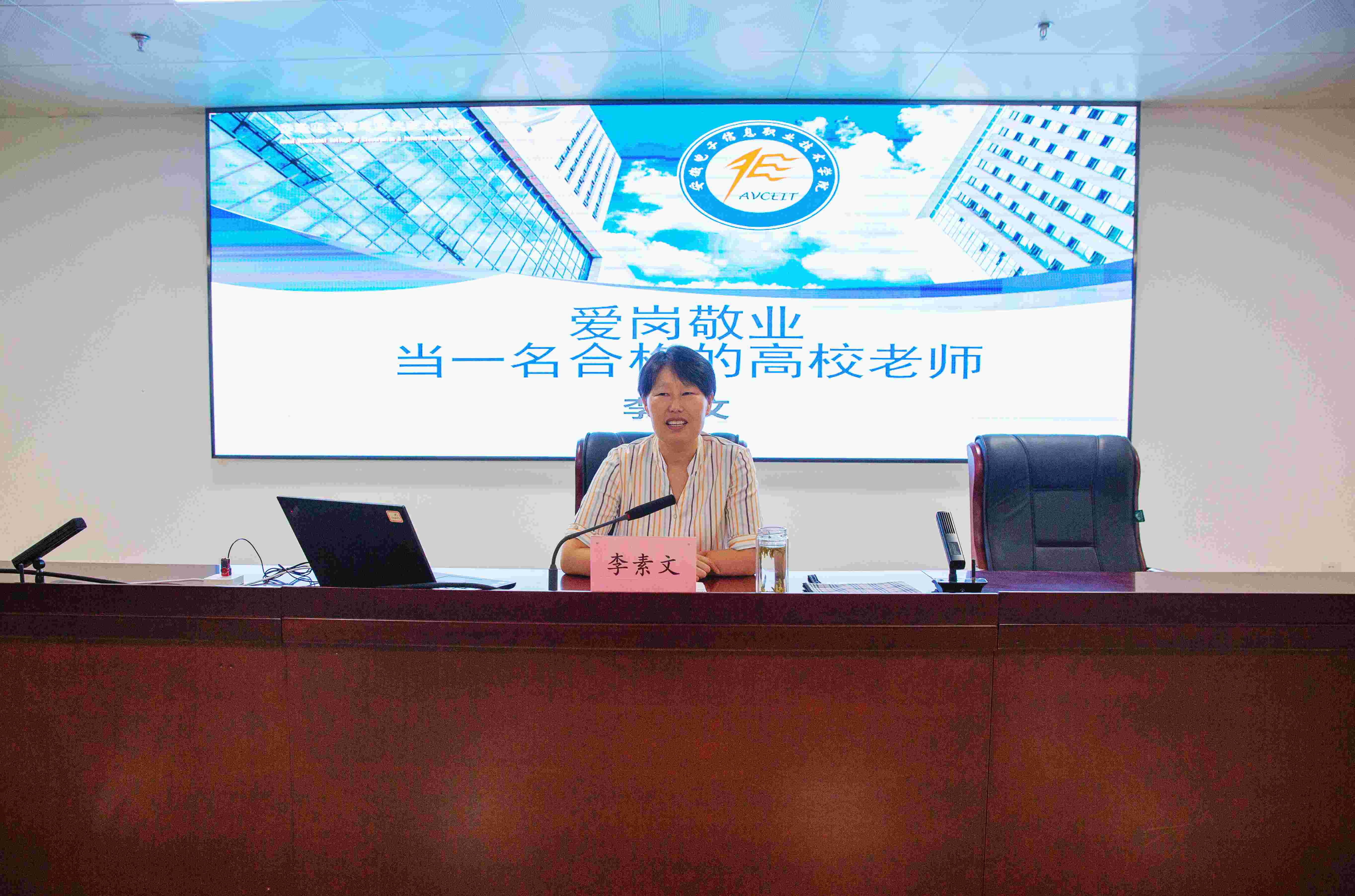 李素文以《爱岗敬业 97精品人妻一区二区三区香蕉,当一名合格的高校教师》为题,深入分析合格高校教师应具有的基本素养,详细阐述站稳课堂和科教融汇的路径要求,并从一名“新电院人”的视角,回顾总结近年来国产香蕉视频免费办学成果和经验,激励青年教师要主动拉高标杆,提高精气神,接好“接力棒”,在推动国产香蕉视频免费高质量发展中成就更好的自己。