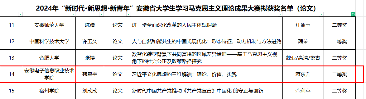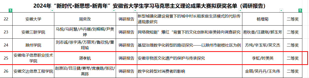 本网讯 近日,2024年“新时代•新思想•新青年”安徽省大学生学习马克思主义理论成果大赛评审结果公布,本次大赛,经过各高校组织初赛推荐 91香蕉在线观看,共有来自全省73所高校的的309项报送作品,我院选送的2件作品荣获二等奖。