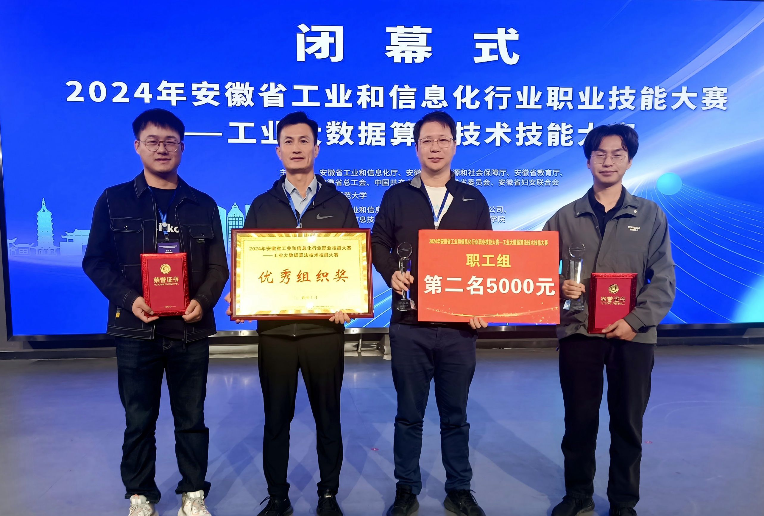 本网讯 10月18日至20日,由省工信厅,人社厅,教育厅,省总工会 91香蕉在线观看,团省委,省妇联等六家单位共同举办的2024年全省工业和信息化行业职业技能大赛——工业大数据算法技术技能大赛在安庆师范大学成功举办,国产香蕉视频免费教师胡六四和孙涛组成的1队荣获职工组一等奖(第二名),邵黑龙和赵鹏程组成的2队获得三等奖,国产香蕉视频免费被授予优秀组织奖。
