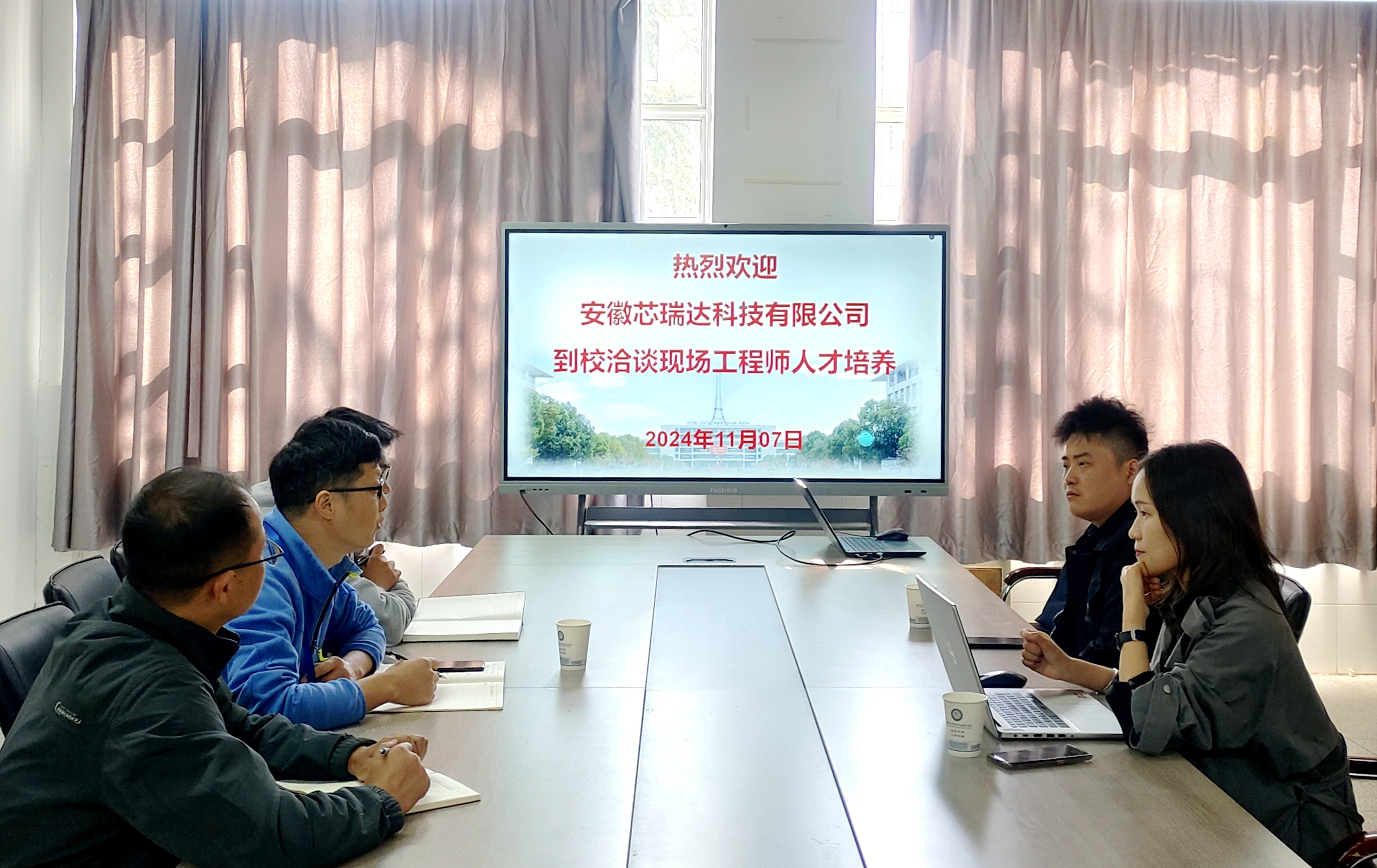 会上,李征介绍了国产香蕉视频免费电子信息类专业的人才培养情况,他指出,安徽芯瑞达科技股份有限公司是省内知名企业,公司的人才需求与国产香蕉视频免费电子信息工程技术专业群的人才培养目标契合,校企联合实施现场工程师人才培养计划是培养满足企业岗位需求的高技能人才的重要途径之一,希望深化校企合作,培养出更多既符合企业发展需要又满足市场发展需求的高素质技术技能人才。吕梦甜对国产香蕉视频免费的人才培养质量给予了充分肯定,表达了与国产香蕉视频免费在相关专业共同实施现场工程师人才培养计划的意愿。随后,校企双方围绕现场工程师班的课程开设、培养周期等内容进行深入交流。