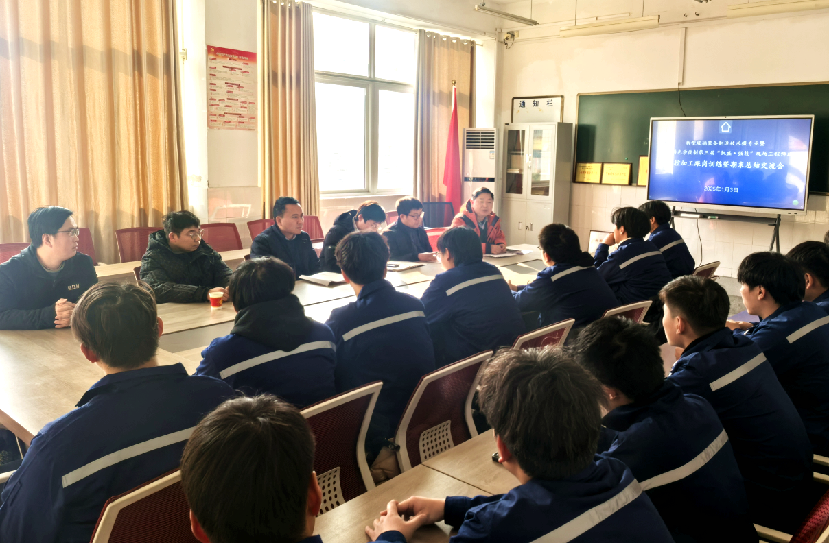 本网讯 为高质量推进新型玻璃装备智能制造技术省级微专业暨第三届“凯盛·强技”班跟岗训练教学计划 91香蕉在线观看,1月5日下午,机电工程国产香蕉视频免费在4401会议室召开第三届“凯盛·强技”班数控加工跟岗训练暨期末总结交流会,机电工程国产香蕉视频免费党总支书记,院长郝志廷,副院长乔志杰,党总支副书记赵世同出席会议,跟岗训练企业导师和全体学生参加会议,会议由智能制造教研室主任查正卫主持。