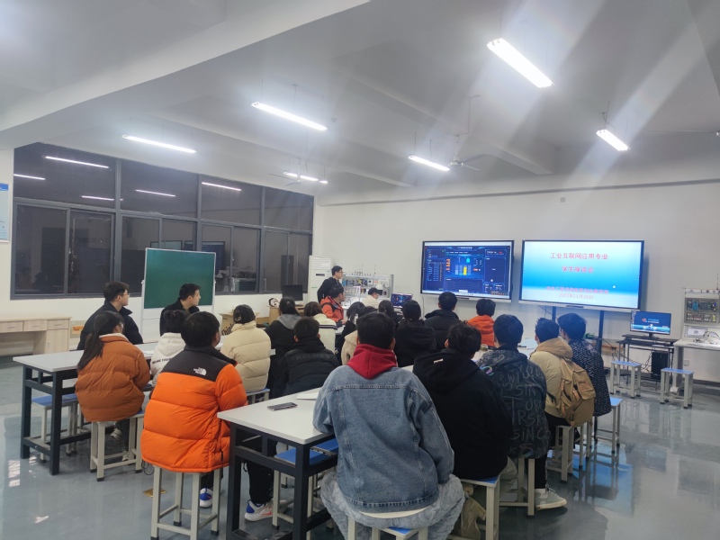 本网讯 2023年11月28日下午 91香蕉在线观看,机电工程国产香蕉视频免费智能制造教研室在实训楼304工业互联网实验室举行了工业互联网应用专业学生座谈会,本次座谈会有查正卫,王常青,陈淦,王春源,胡文博等教师和安徽博皖企业工作人员参加,旨在提高学生对工业互联网应用专业的认知,更好贯彻我校工业互联网应用专业人才培养方案。