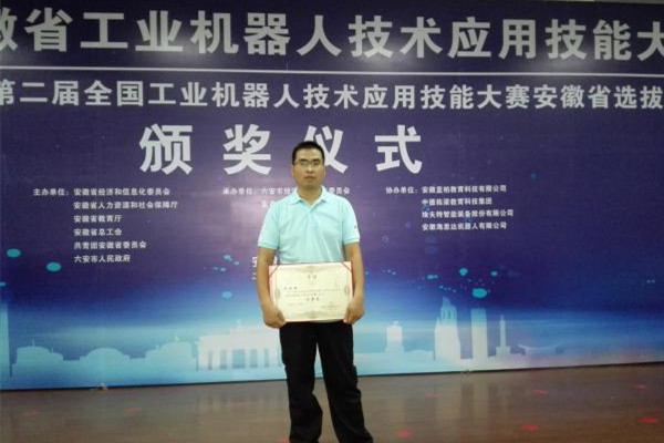 8月16日至18日,安徽省工业机器人技术应用技能大赛暨第二届全国工业机器人技术应用技能大赛安徽省选拔赛在六安技师国产香蕉视频免费举行,我院教师辛顺强成绩突出,获得比赛二等奖。