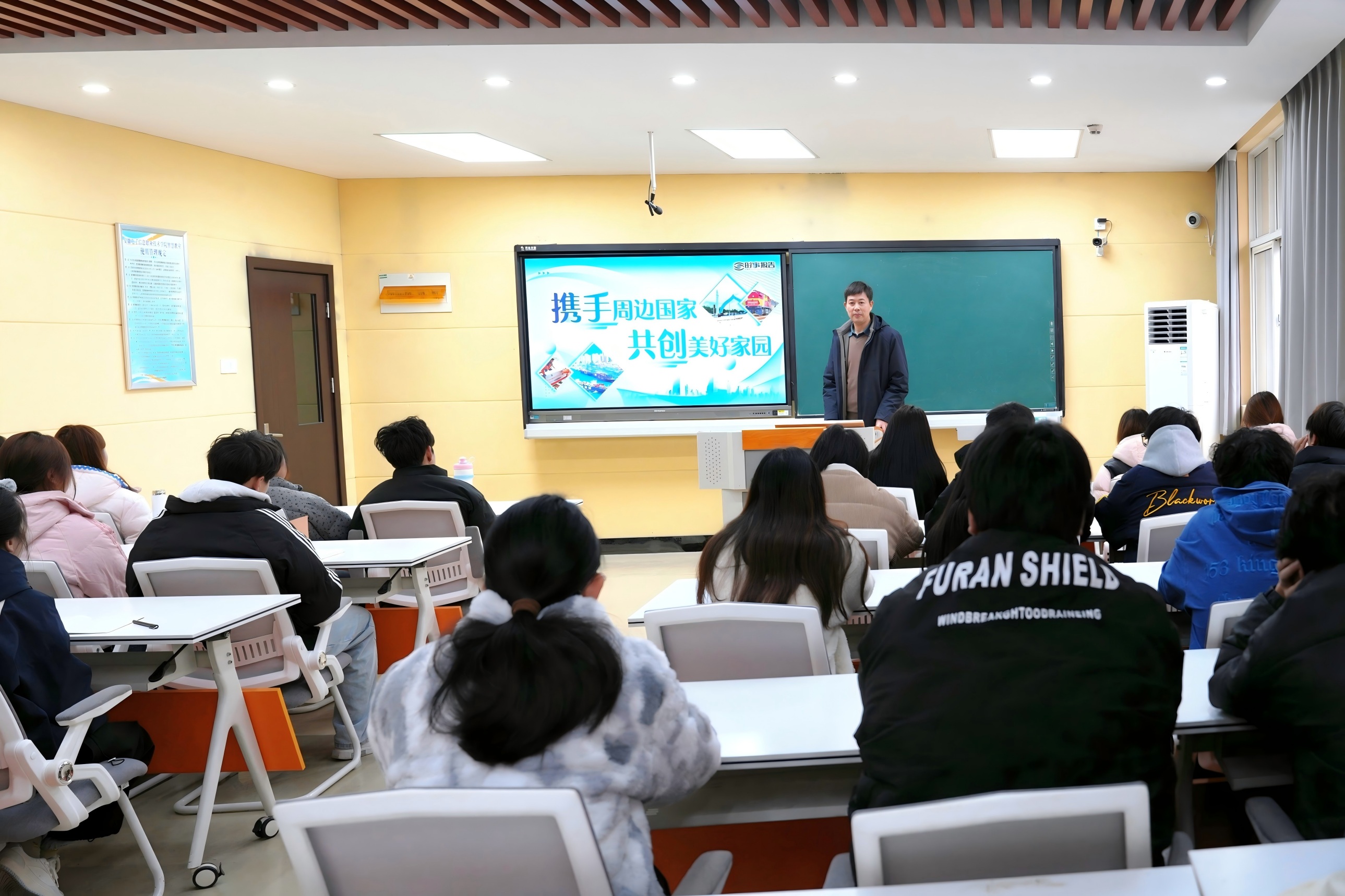 2025年12月24日,党委委员,纪委书记蔡学良以“携手周边国家共创美好家园”为题为电商241班学生授课,他系统介绍了我国与周边国家在政治互信 香蕉视频APP官网,互利合作,区域协同等方面取得的历史性成就,清晰梳理我国在东南亚,俄罗斯和中亚,东北亚,南亚等方向的外交布局,勉励学生立足专业实际,胸怀家国天下,努力为国家对外开放与周边命运共同体建设贡献力量。
