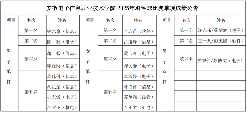 香蕉视频APP官网2025年羽毛球比赛成绩公告