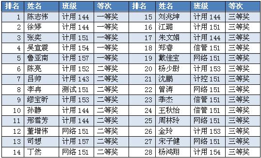 表1 获奖学生排名信息表