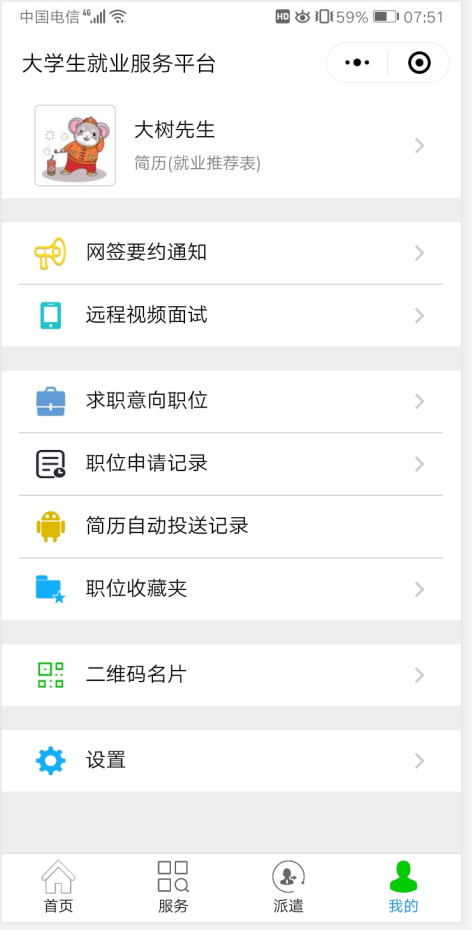 第一步 91香蕉在线观看,毕业生在“我的”中打开“二维码名片”,向用人单位招聘人员发送二维码,并告知使用微信扫描二维码。