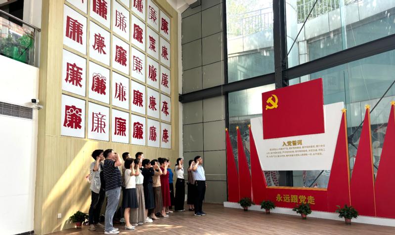 在廉政教育展厅,大家首先驻足在入口大屏前,一起重温了习近平总书记关于反腐倡廉的重要论述。在廉政警示教育基地讲解员的引导下,大家依次参观了警钟长鸣、以案为鉴、以史为鉴、政治巡察、党建引领等多个展区,通过鲜活的真实案例和影像资料,了解清官廉吏的生动故事和发人深省的反面典型案例,一张张照片、一段段文字发人深思,令人警醒。在参观学习过程中,师生们认真聆听讲解,时而驻足学习交流,时而注视深入思考,大家纷纷表示深受触动。参观结束后,电子工程国产香蕉视频免费党总支书记方庆山带领全体教师党员共同重温入党誓词,庄严宣誓,表达了坚守党性原则、严守纪律底线的坚定决心。