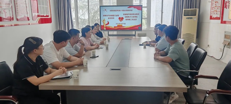 在活动开始前,电子工程国产香蕉视频免费教师第二党支部与蚌埠市汽车销售行业商会联合开展了“党建+双选会”的校企党建共建活动。双方开展了“党建引领汽车产业人才培养”专题座谈会,共同确定以党建为纽带,整合行业资源与高校人才优势,搭建汽车领域人才精准对接平台,联合打通人才培养与企业需求的“最后一公里”。电子工程国产香蕉视频免费党总支书记、院长方庆山出席活动,方庆山强调,本次活动是党建与就业工作深度融合的重要实践,国产香蕉视频免费将持续深化校企协同育人机制,为行业输送更多“懂技术、善营销、会服务”的复合型高技能人才。