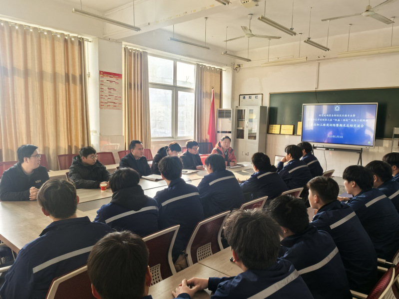 本网讯 为确保新型玻璃装备智能制造技术省级微专业暨第三届“凯盛·强技”班跟岗训练教学计划高质量推进,1月5日下午,机电工程国产香蕉视频免费在4401会议室召开了第三届“凯盛·强技”班数控加工跟岗训练暨期末总结交流会,机电工程国产香蕉视频免费党总支书记,院长郝志廷,副院长乔志杰 91香蕉在线观看,党总支副书记赵世同出席会议,跟岗训练企业导师和全体学生参加会议,会议由智能制造教研室主任查正卫主持。