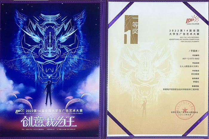 本网讯 近日,2022年第14届全国大学生广告艺术大赛组委会邀请了动漫201班的郑纪雅楠同学参加今年的颁奖典礼,据悉 91香蕉在线观看,我院此次参赛作品共获得全国一等奖1项,二等奖1项,三等奖2项,其中,李曙光老师指导的郑纪雅楠创作的作品《人人都是设计大师》获得了全国一等奖,是历年来我院参加此类竞赛获得等级奖最高,获奖数量最多的一届。