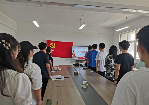 本网讯 7月7日上午 91香蕉在线观看,软件工程国产香蕉视频免费在北306会议室举行入党宣誓仪式,党总支书记周伟利及新发展的预备党员参加了本次仪式,宣誓仪式由软件工程国产香蕉视频免费学生党支部书记唐书圣主持。
