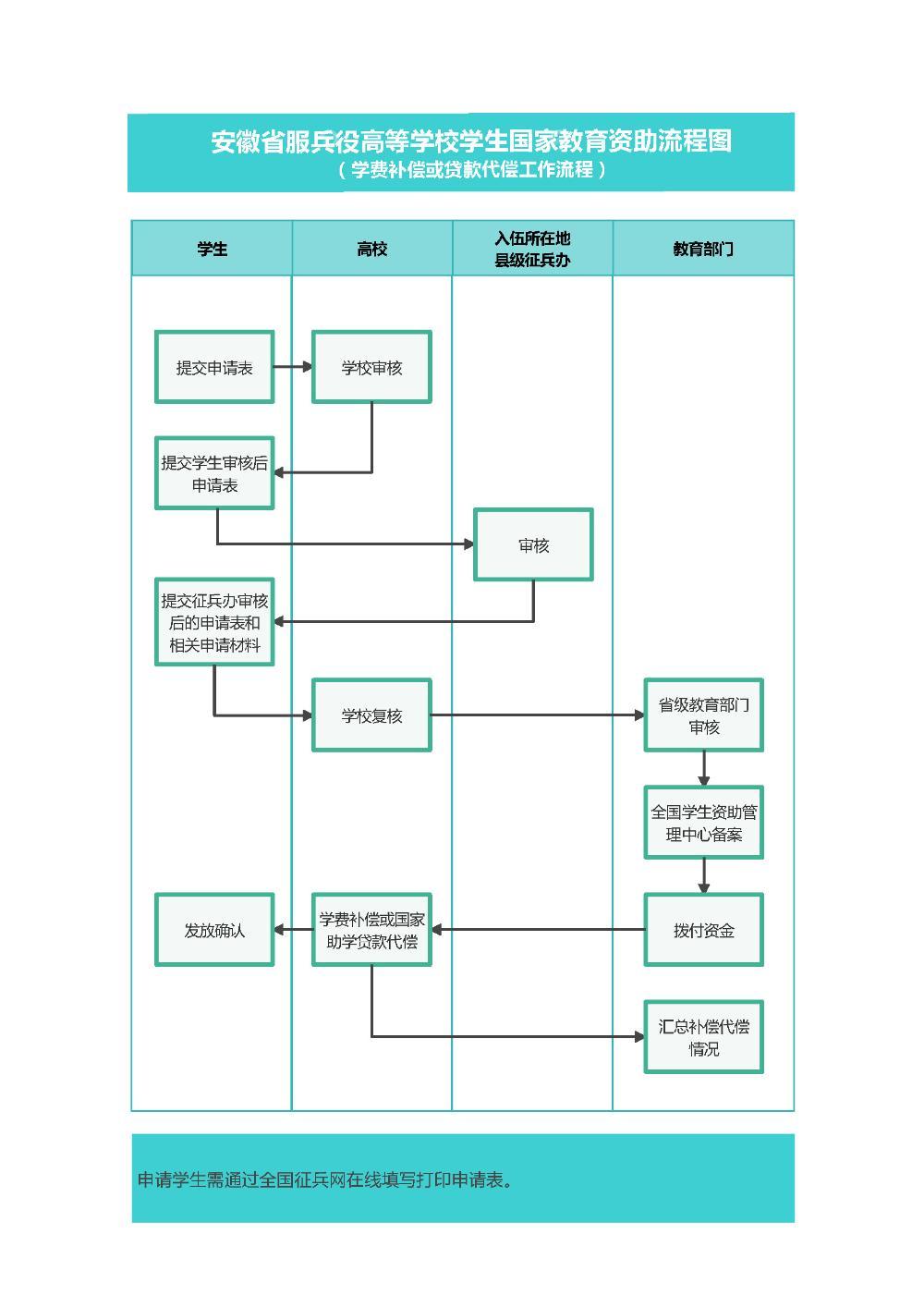 安徽省服兵役高等91香蕉在线观看学生国家教育资助流程图(学费补偿或贷款代...