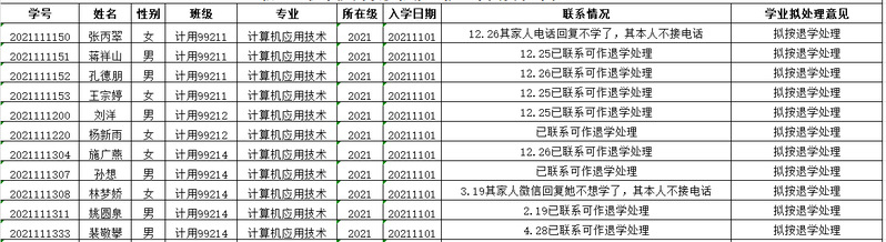 高职扩招2021级拟作自动退学处理学生名单(共计11人):